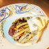 πίτα, ντομάτα, κρεμμύδι, πατάτες, σως