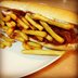 πάριζα, γκούντα, διπλό μπέικον, μαγιονέζα, μαρούλι, ντομάτα, πατάτες